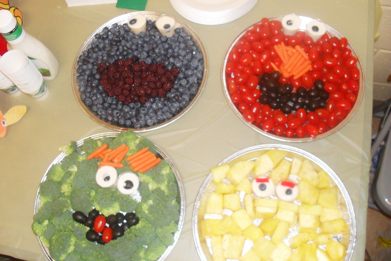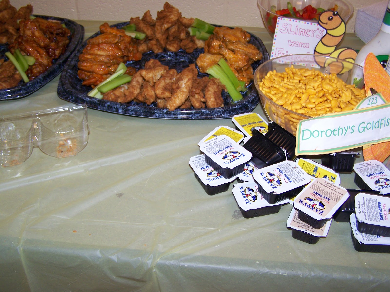 For food we had Zaxby's Chicken Strips, Fruit & Veggie Platters, Goldfish, Gummy Worms, Soda and Juice.