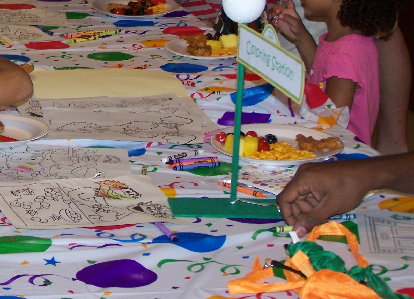 This was the coloring station that turned into the eating station! LOL. Kids will be kids. They wanted to eat and color at the same time :D |