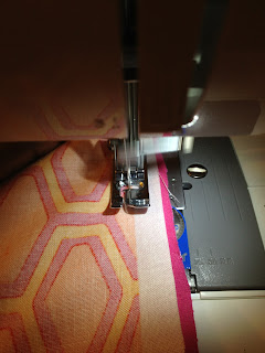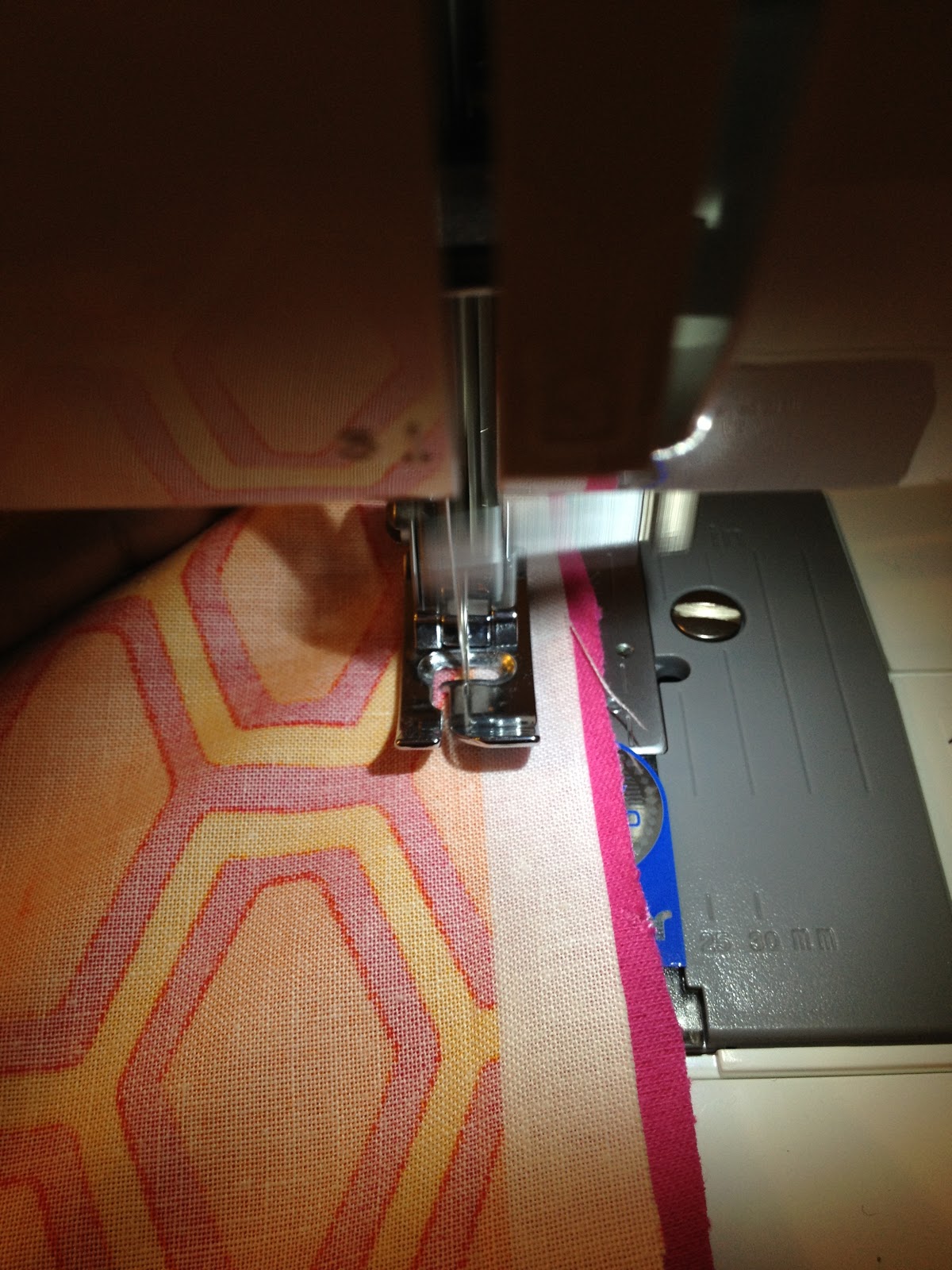 Slowly press down on foot controller and sew 3 sides leaving about a 1/2 for the seam allowance.