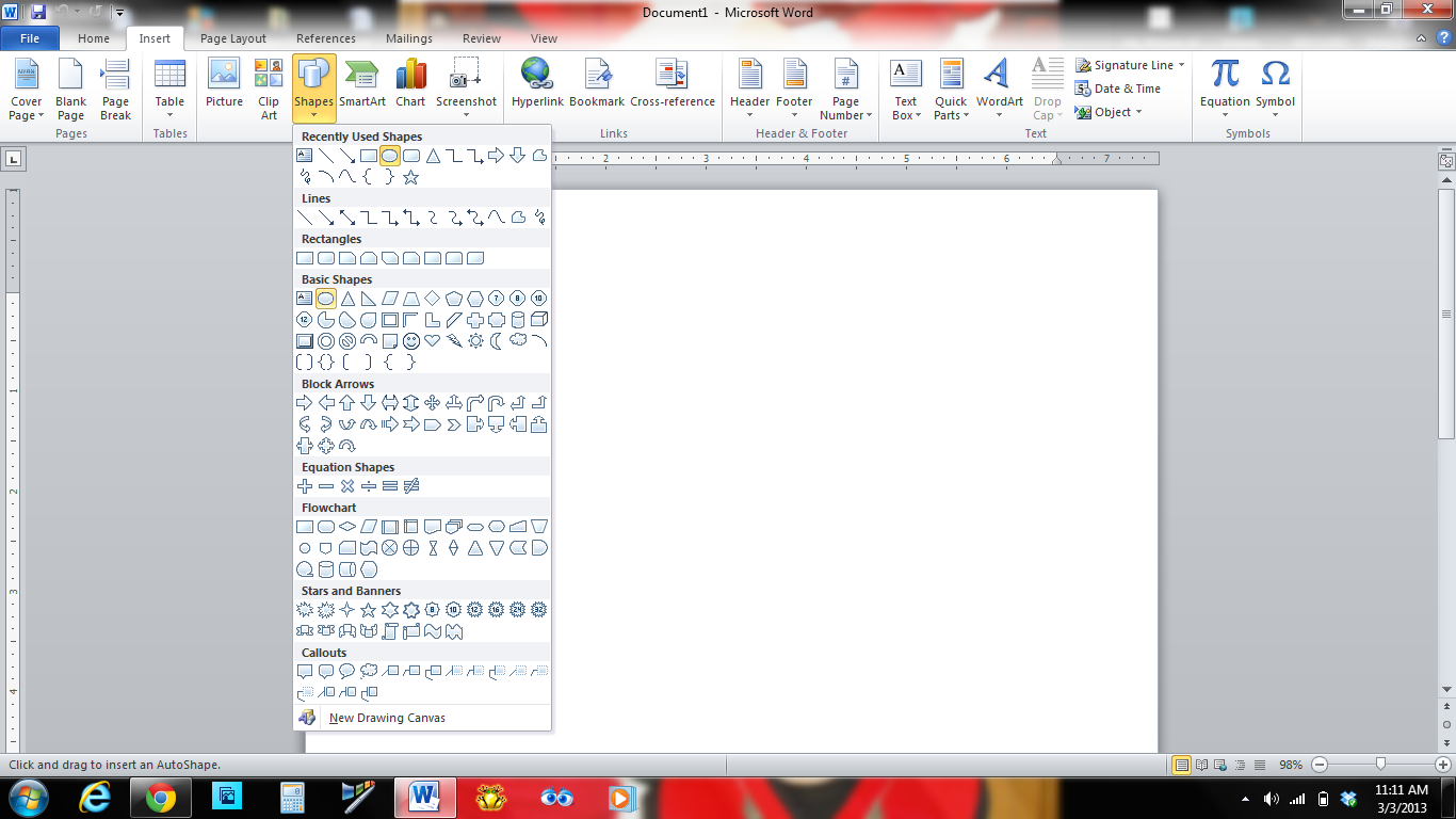 | Go to your Insert Tab-Shapes-Basic Shapes- and select Circle |